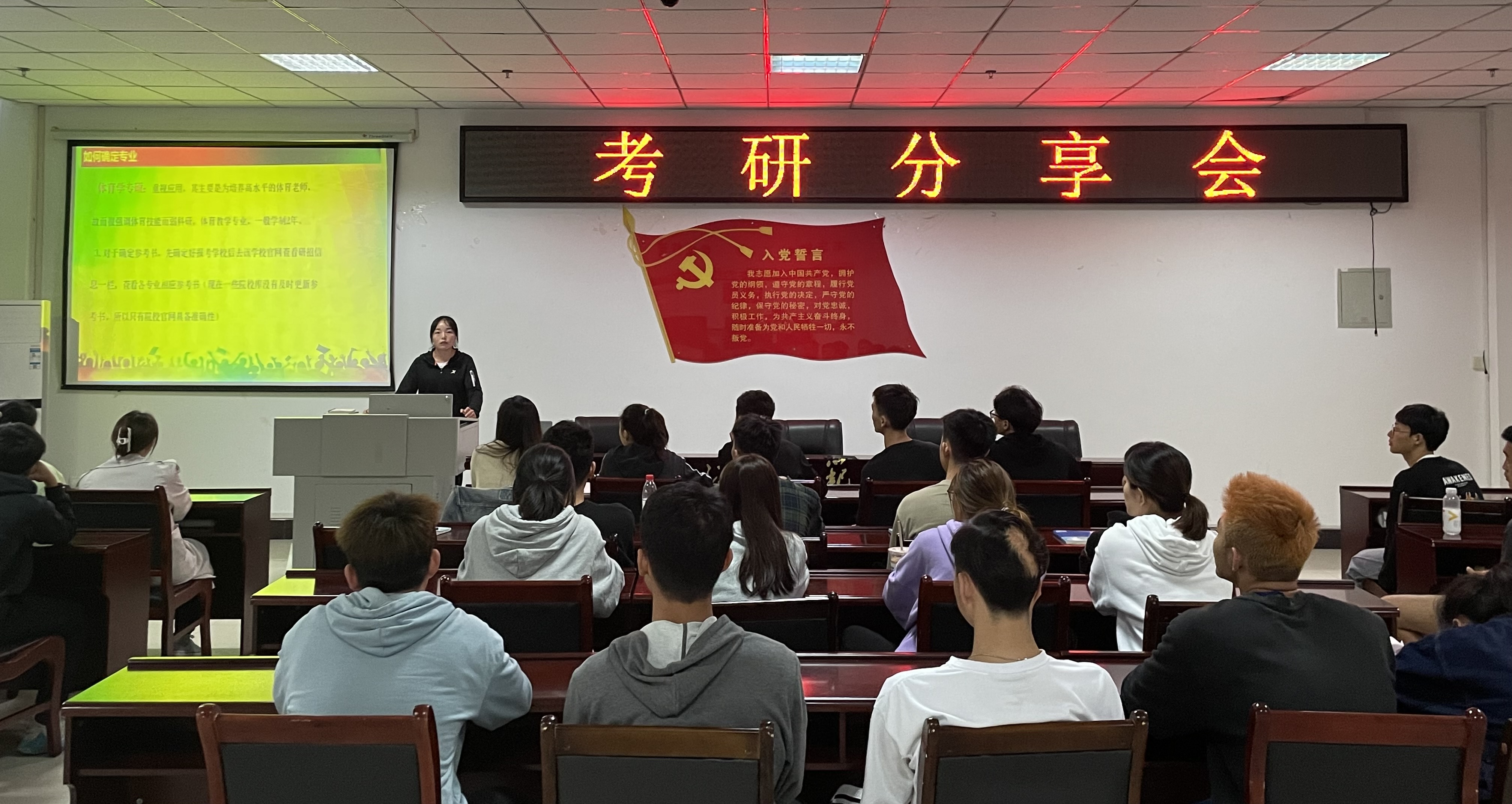 2022年5月20日中午12:20,体育与健康科学学院在弘毅体育馆121会议室开展了考研分享会,本次活动由2018级张邯担任主讲,由部分同学参加。