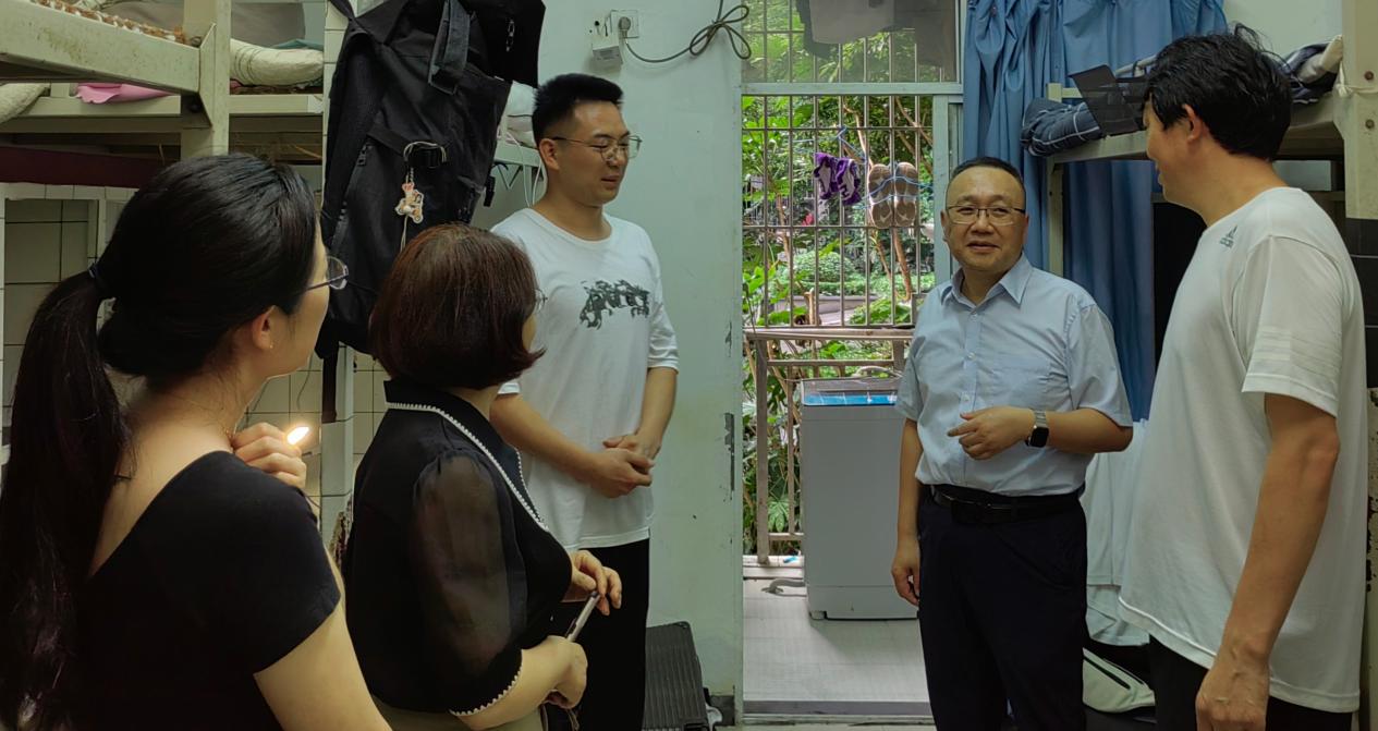 2022年6月20日晚19:00,在2022届毕业生即将毕业离校之际,学校党委副书记戴玄带领相关职能部门深入毕业生寝室进行走访,亲切看望同学们。我院院长张世威、党总支书记何海燕、副院长刘官元等学院师生陪同走访。