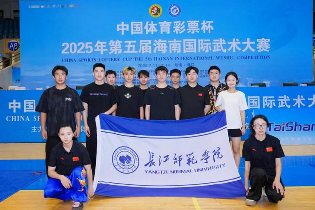 2025年7月10日至14日,由中国武术协会主办的第五届海南国际武术大赛在海南海口举行。来自俄罗斯、法国等29个国家,北京、重庆等25个省市,共182支代表队共1560余名运动员参加了本次大赛。此次比赛按年龄分为A、B、C、D、E组,C组为青年组(年龄:18-39岁)。我校武术队共派出11名学生,参加C组比赛。队员们在训练中克服伤病,比赛中全力以赴,积极配合,最终斩获金牌5枚,银牌7枚,铜牌7枚。