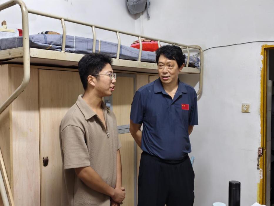 走访过程中,领导们首先向新生表达热烈欢迎与衷心祝贺,随后仔细查看寝室住宿设施、卫生状况与安全情况,关切询问大家“是否适应集体生活”、“饮食起居是否习惯”,并叮嘱新生注意用电安全、保持寝室整洁,遇到困难可及时向老师或学长学姐求助。