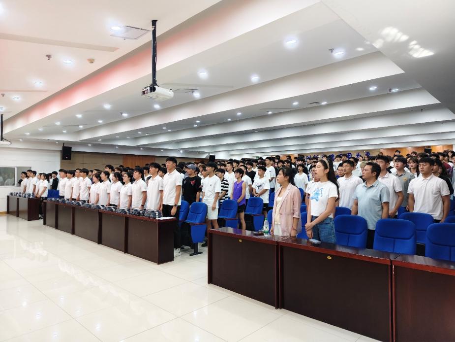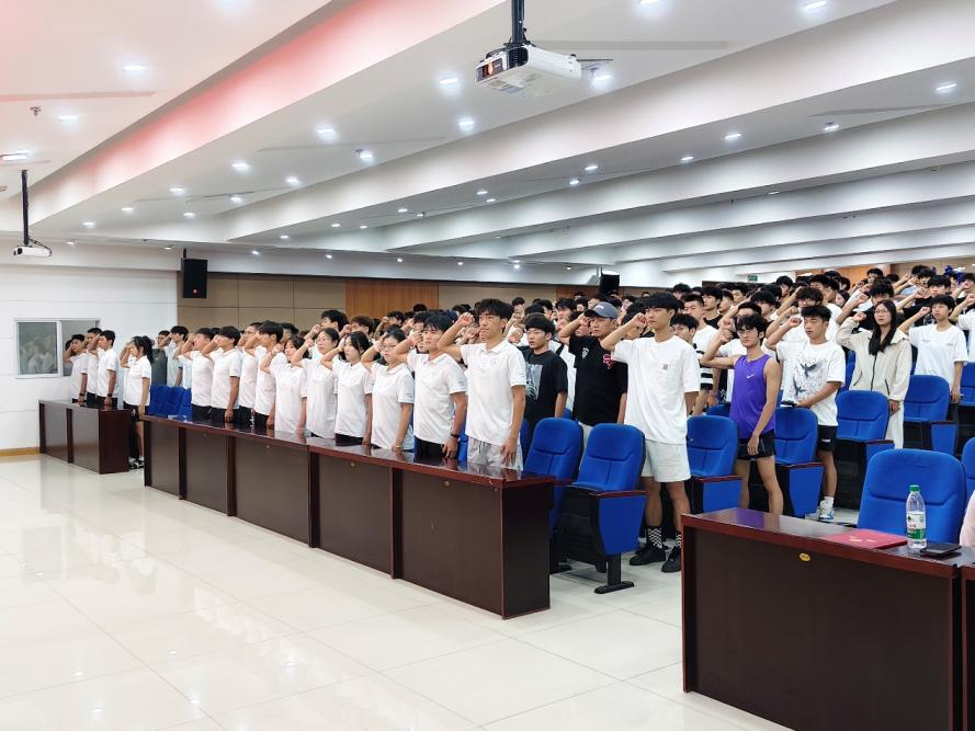 随后,全体新生整齐肃立,庄严宣誓,字字铿锵间,尽显他们立志在大学时光里以运动锤炼体魄、用拼搏浇灌理想,刻苦钻研专业技能、磨砺坚韧意志,用奋斗书写青春篇章的坚定决心。