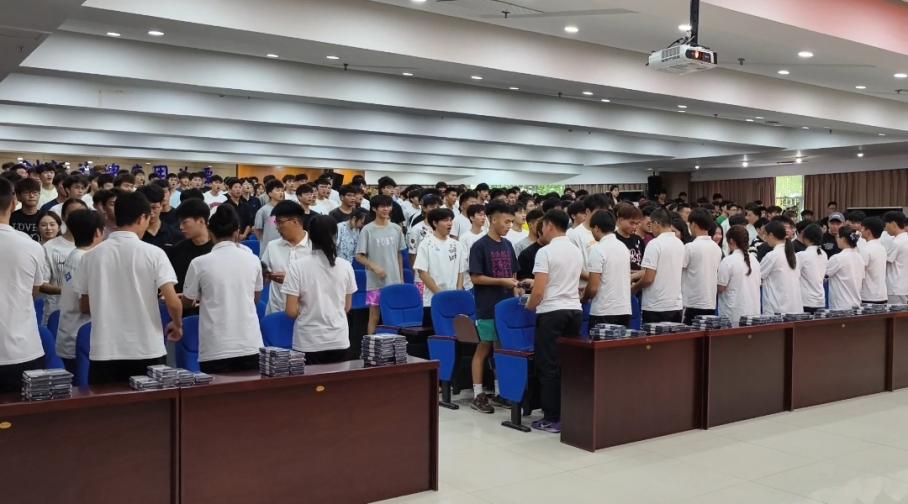 在“授院训薪传笔”环节中,伴随着“弘毅致远,行健至善”的院训声,老生代表们郑重地将承载着学院精神的笔授予全体新生,这一环节寓意着学院精神如薪火般代代传承。