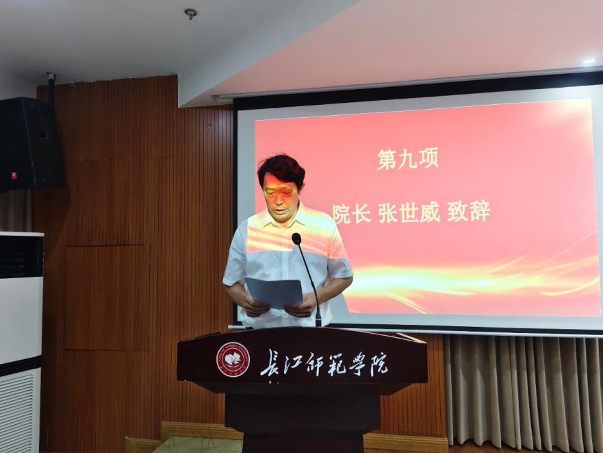 最后,院长张世威发表致辞。他对新生们加入学院表达了最诚挚、最热烈的欢迎,并详细介绍了学院的发展历程与显著优势。张院长指出,学院始终致力于培养六维卓越人才,以体育和教育专业为核心支柱,不断提升办学水平,旨在培育出德才兼备、兼具专业技能与强烈社会责任感的高素质人才。最后,他满怀期许地鼓励新生们在学院这片沃土中探寻自身兴趣、找准前行方向,为未来的人生筑牢坚实根基。