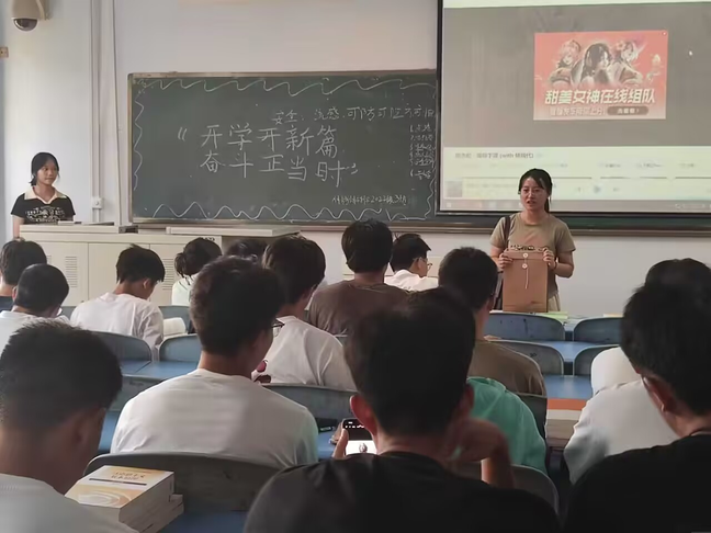 为引导同学们以积极的姿态开启校园学习生活新征程,2023年9月3日,我院在正心楼开展了“开学开新篇,奋斗正当时”主题班会。本次班会由22级辅导员龙娇担任主讲人。22级全体学生参加。