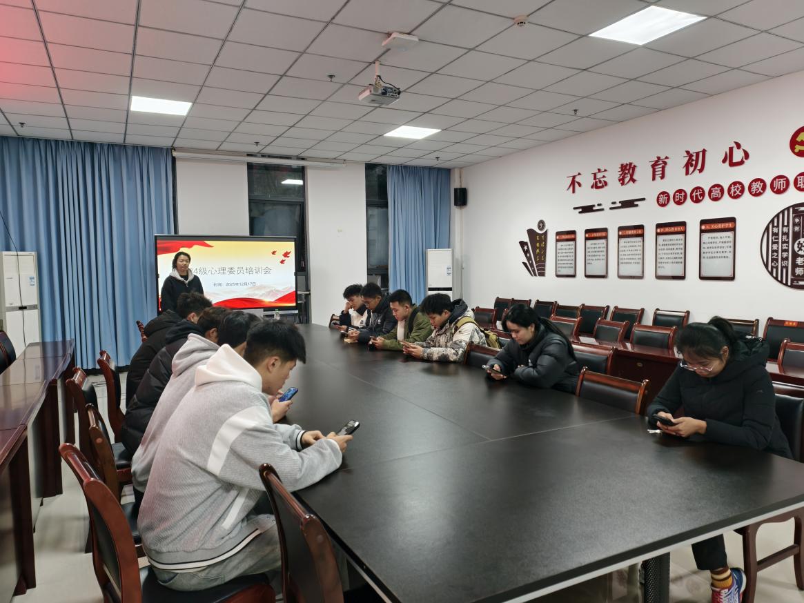 为进一步明确心理委员职责定位,提升其心理健康知识储备与实践工作能力,12月17日,我院学生会心理发展部在弘毅体育馆127会议室组织开展心理委员培训会,24级心理委员参加。