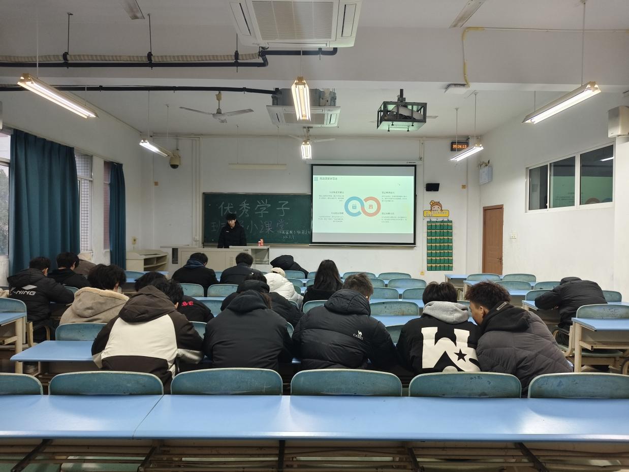 为浓厚期末学风氛围,搭建朋辈学习交流平台,促进优良班风学风建设,1月3日,我院在正心楼开展“优秀学子班级小课堂”活动,各班成绩优异者及奖学金获得者担任主讲人,2023级、2024级、2025级全体学生参加。
