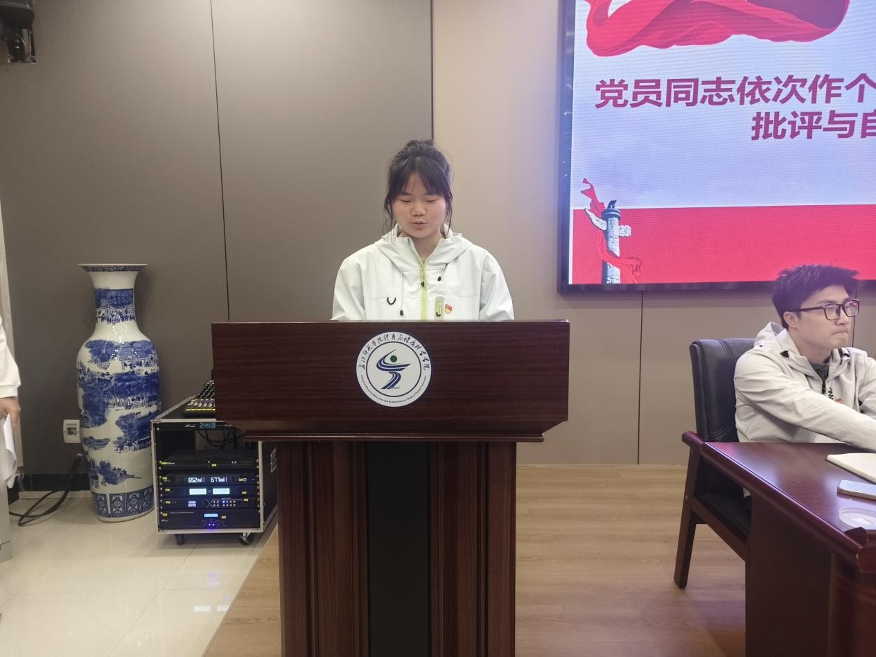龙娇作总结发言。她充分肯定本次学习成效,强调全体党员要以此次活动为契机,持续深化自我革命,把深学细悟二十大精神作为重要政治任务抓牢抓实。她指出,全体党员要坚持问题导向,将正确政绩观落实到日常学习、支部工作与专业实践中,立足体育教育专业特色,在服务同学、助力学院发展中展现青年党员的责任担当。龙娇要求,支部要建立常态化学习监督机制,切实把理论学习成果转化为推动学院高质量发展的实际效能,为营造风清气正的校园环境提供坚实保障。